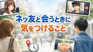 未分類 ネッ友と会うときに気をつけること!初対面でも安心・安全に会うためのポイント ネッ友と実際に会うことになり、「楽しみだけど少し不安…」と感じている方も多いのではないでしょうか。初対面となると、緊張や心配があるのはとても自然なことです。でも大丈夫です。事前にポイントを知っておけば、ネッ友との初対面は安全に、そして落ち着... 未分類